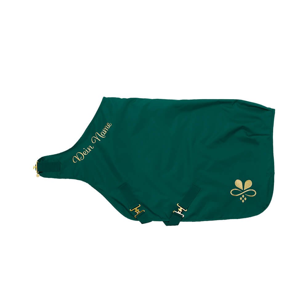 Deine neue wasserdichte Lieblingsdecke in Tannengrün, die dein Shetty vor Regen und kalter Luft schützt. Du hast die Wahl aus Standardmaßen oder aber du gibst uns deine Maße durch, damit alles perfekt passt. Von 0gr bis kuschelig warm mit 150gr Füllung. Wahlweise mit Details in Silber, Gold oder Roségold.