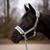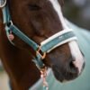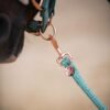 Handgefertigtes Halfter aus Gurtband eingefasst mit Velvet und Beschägen in Rosegold. So stabil wie ein Lederhalfter, so weich, dass du es die ganze Zeit anfassen willst.