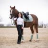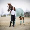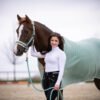 Dein perfectes Set für dich selbst oder zum Verschenken an Weihnachten. In Jadegrün mit Details in Rosegold. Dein Set besteht aus Abschwitzdecke, Schabracke, Bandagen, Fliegenohren und passendem Velvethalfter mit Führstrick.